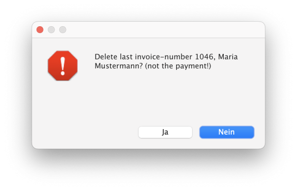Hinweis! Es kann immer nur die letzte erstellte Rechnung gelöscht werden. Zudem handelt es sich hierbei nicht um eine Stornierung der Bezahlung bzw. der Quittung, sondern nur um die Löschung der genierten Rechnung. Der Bezahlvorgang bleibt somit bestehen.