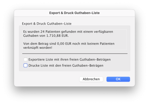 • Suchbefehl: Patienten-Guthaben größer Null
