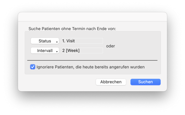 Suchbefehl: Patienten Status- oder Intervall