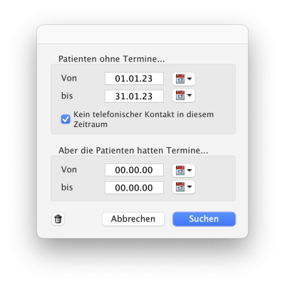 • Suchbefehl: Patienten ohne Termine