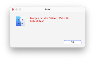 Gemäß der Voreinstellung des Administrators wird die E-Mail nach Ablauf der angegebenen Wartezeit automatisch versendet. Mit dieser einmaligen Aktivierung werden die Einstellungen zum automatischen Versand von E-Mails bei diesem Patienten in der Patientenkartei aber nicht verändert!